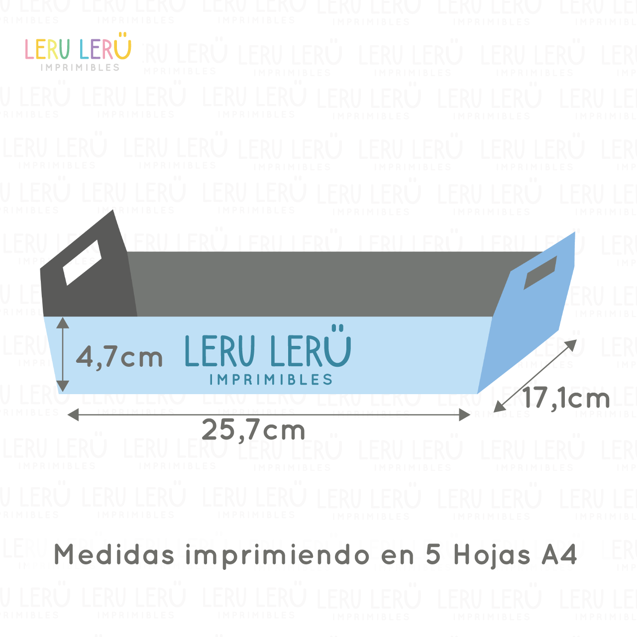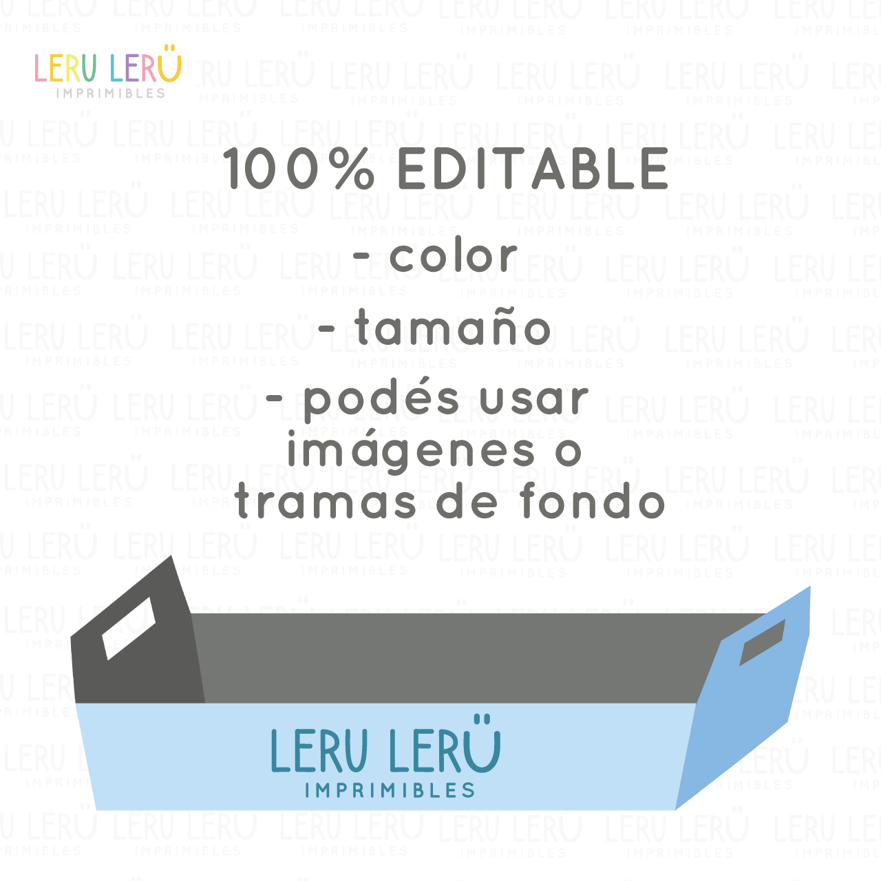 – 1 modelo editable de bandeja con manijas, configurado para imprimir en 5 hojas A4.