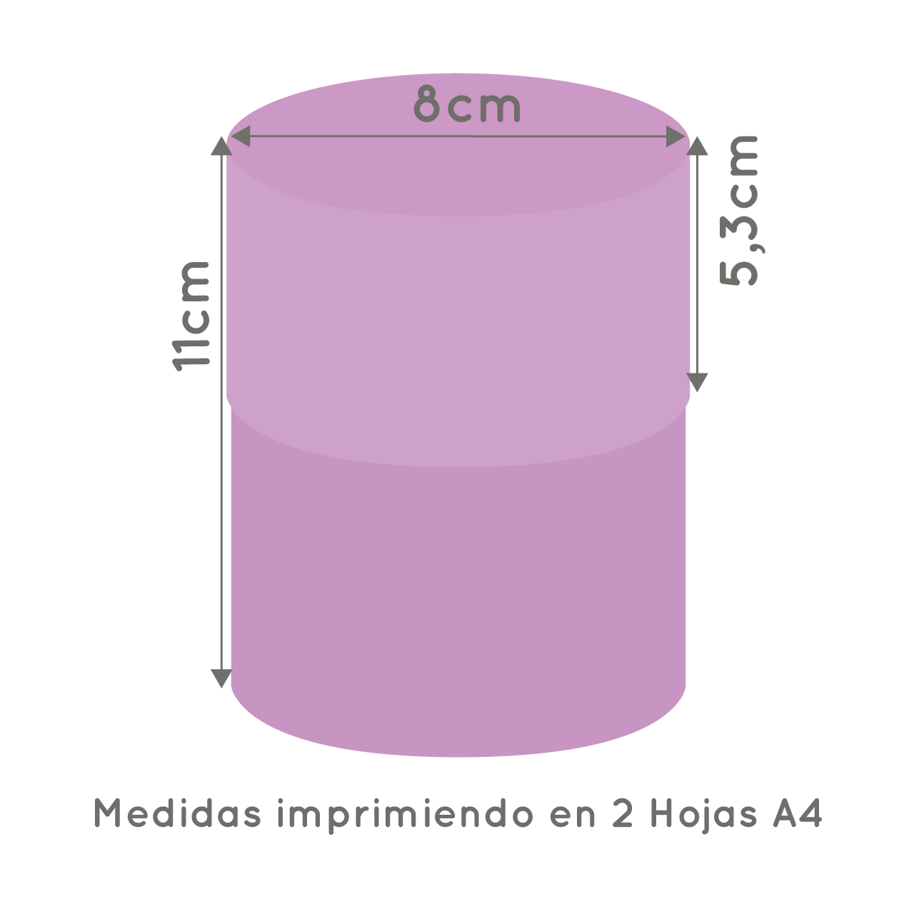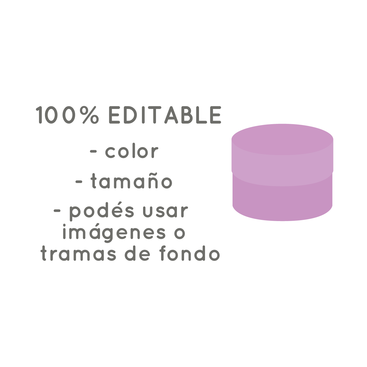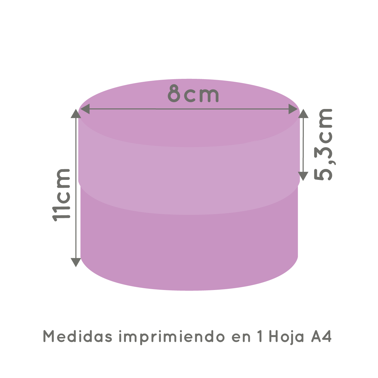 – 1 modelo de caja cilíndrica con tapa, viene configurada para imprimir en una hoja a4 y en dos hojas a4. Las medidas son las que se ven en las imágenes (salvo en silouette studio que es un poquito más pequeño por las marcas de registro).
