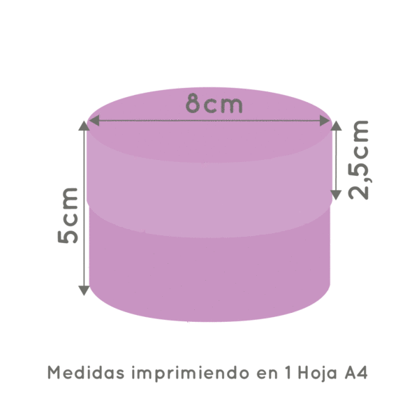 – 1 modelos de caja cilíndrica, viene configurada para imprimir en una hoja a4 y en dos hojas a4. Las medidas son las que se ven en las imágenes (salvo en silouette studio que es un poquito más pequeño por las marcas de registro).