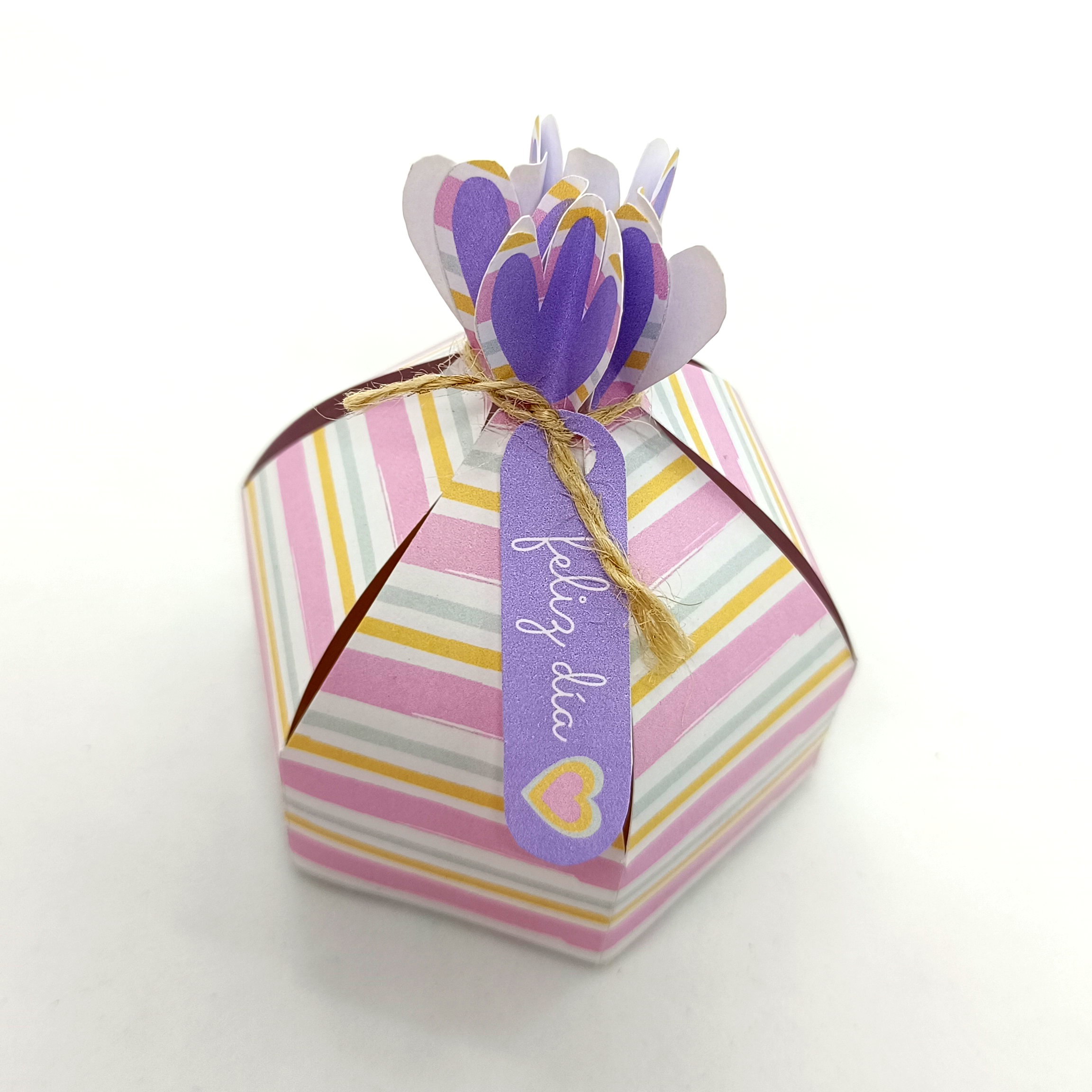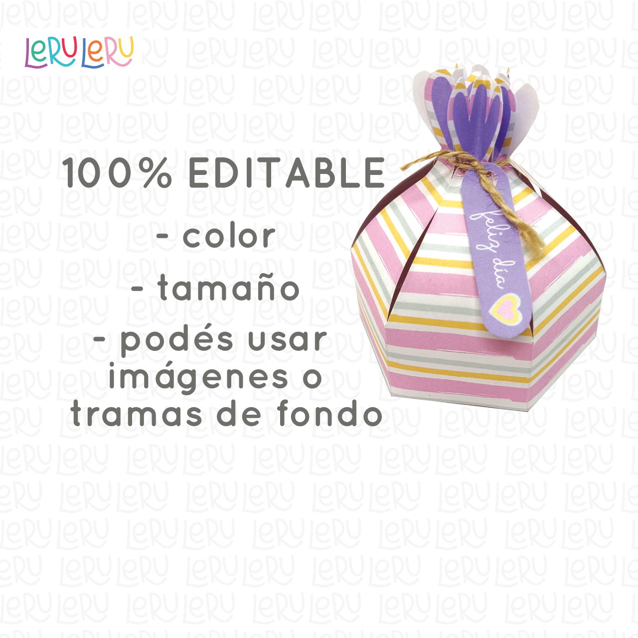 – 2 tamaños de caja hexagonal con puntas dobles de corazon, vienen configurados en 1 y 2 hojas a4 (también se puede modificar la pagina e imprimir en a3). Las medidas son las que se observan en las imágenes.