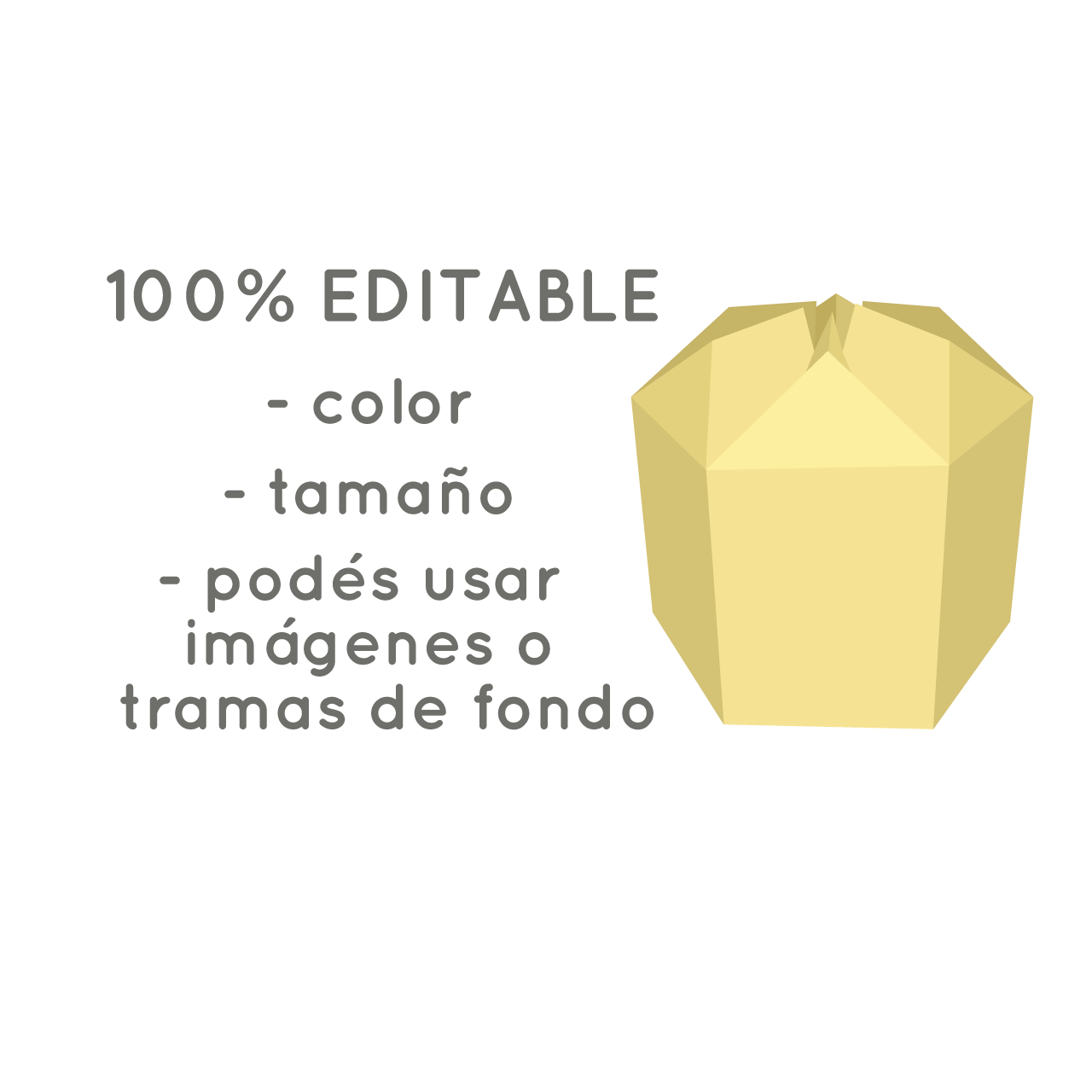 – 3 tamaños de caja hexagonal con frunce y picos, vienen configurados en hoja a4 (para imprimir en una, dos y tres hojas, también se puede modificar la pagina e imprimir en a3). Las medidas son las que se observan en las imágenes.