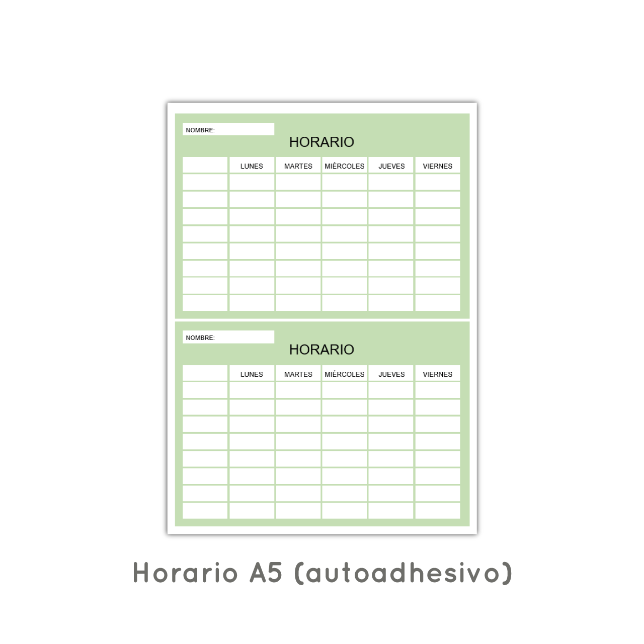 – horario tamaño A5 (para autoadhesivo)
